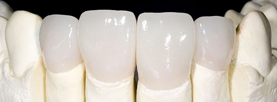 Die Zirkonbasis unter der Keramik ermöglicht nämlich eine gewisse Dosis an Lichtdurchlässigkeit und ist weiß gefärbt, so dass keine Bildung eines sog. schwarzen Zahnfleischrands auftreten kann, wie es bei Metallbasen der Fall ist.